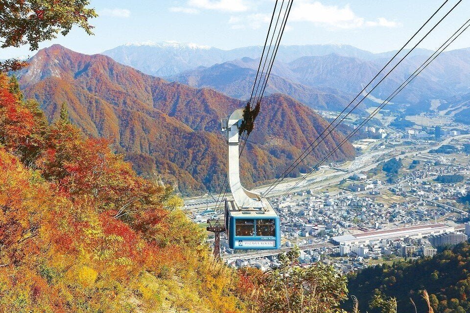 今年の紅葉見頃予想は10月下旬となっています。約7分間の空中散歩で魚沼平野や谷川連峰、巻機連峰、大峰山などが一望でき、まるで絵画のような美しい景色が広がります。