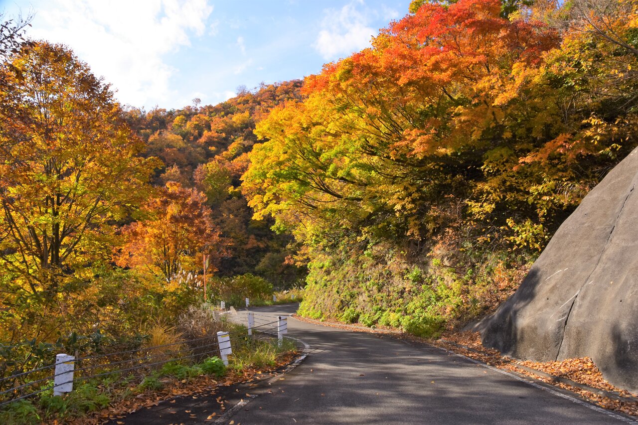 高低差のある峠道を進むと、徐々に移り変わっていく紅葉の色づきを見ることが出来るんです!