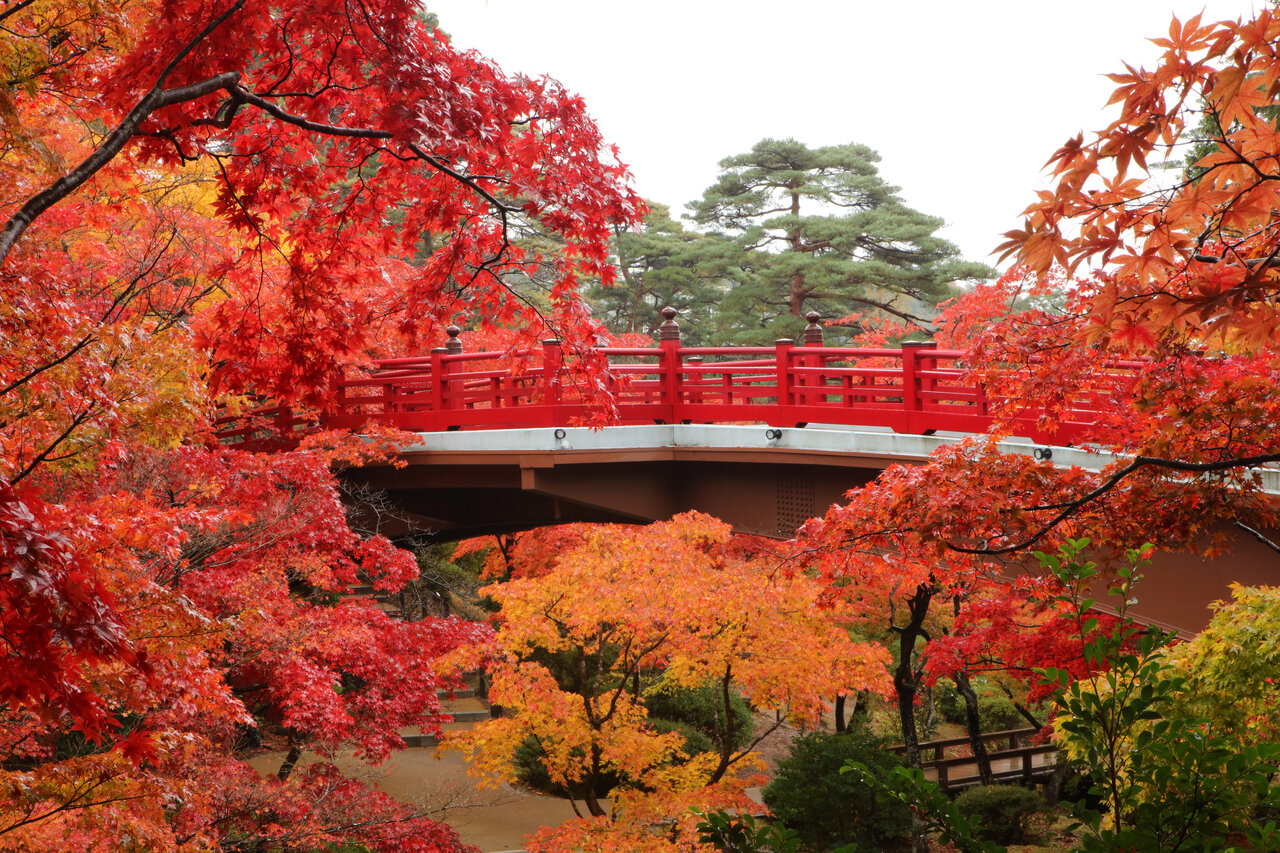 【見頃は11月上旬~】ライトアップあり!観月橋と紅葉が織りなす絶景♪ 「弥彦公園」【新潟県の紅葉スポット特集2025】