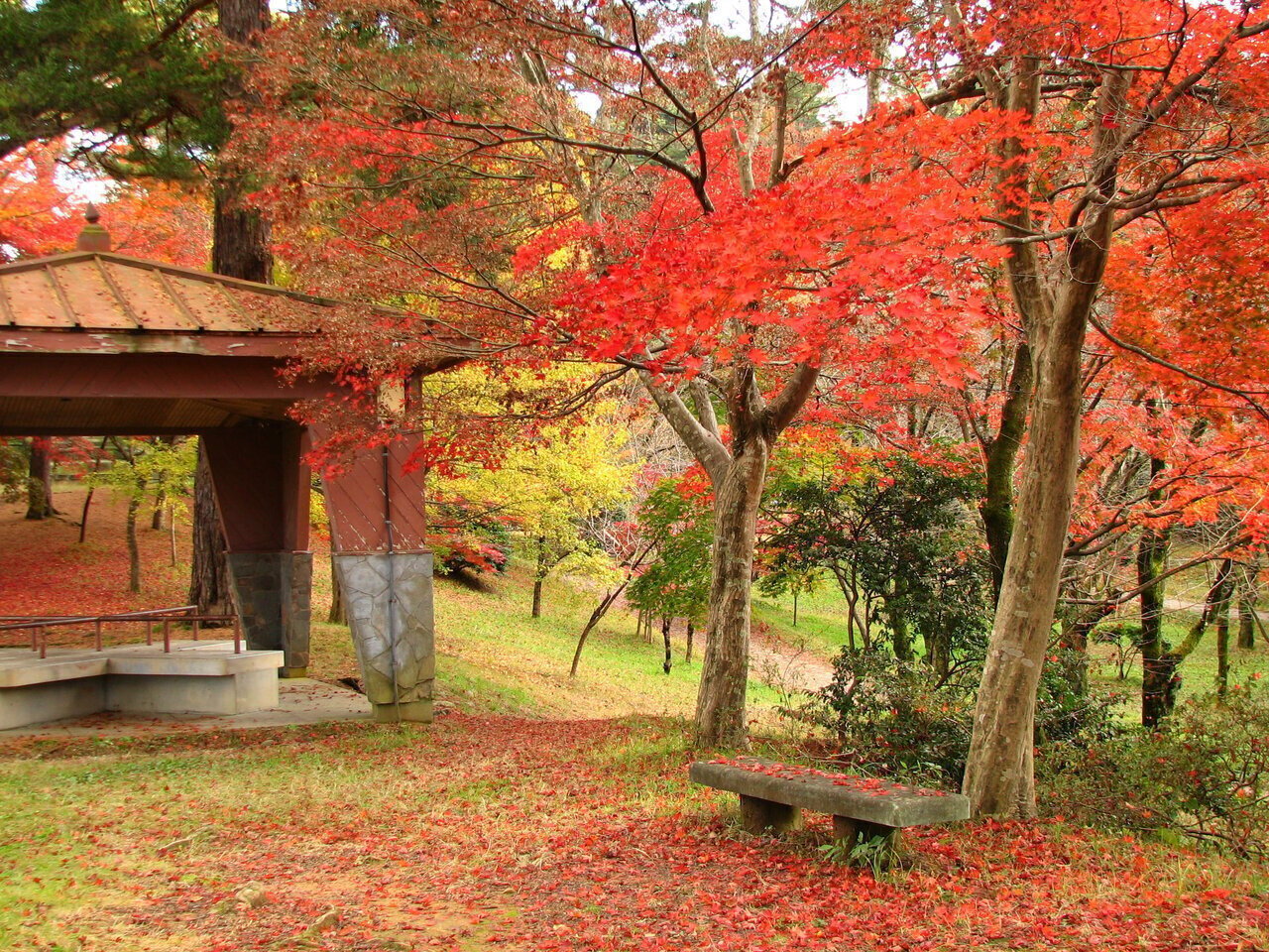園内のもみじが真っ赤に色づき、この季節だけの景色を楽しめるんですよ♪