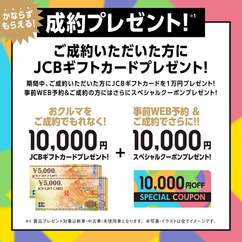 まずは、イベント期間中に成約すると、1万円分のJCBギフトカードのプレゼントがもらえるんです!