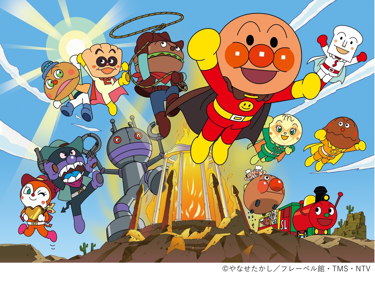 助けを呼ぶ声を聞いたアンパンマンは、西部のまちへと向かいます。