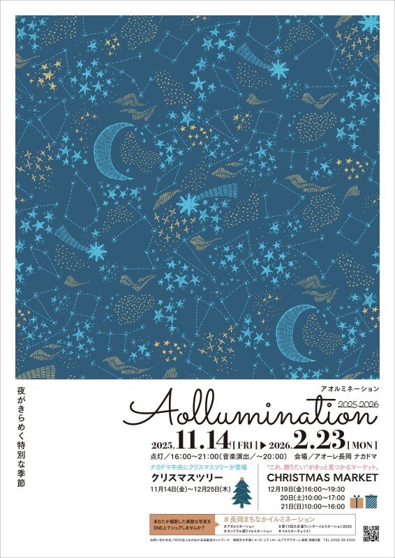 2025年11月14日(金)~2026年2月23日(月・祝)の期間中、長岡市「アオーレ長岡」のナカドマで『Aollumination 2025-2026』が開催されます。