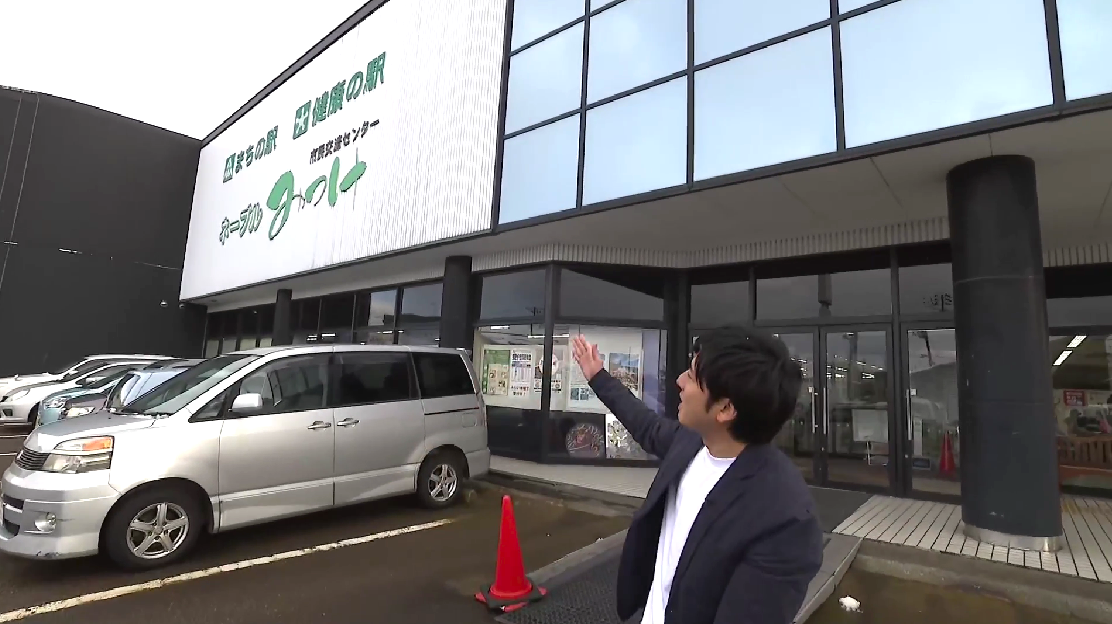 左から まちの駅長 辺見秀俊さん、TeNYテレビ新潟 岡田康さん