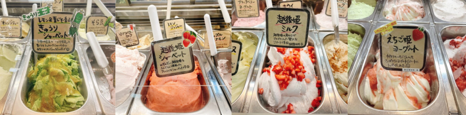 「越後姫3シリーズ」は当店でも大人気のフレーバーです!甘みと酸味が丁度いい越後姫。どのフレーバーを食べても間違いないジェラートです!