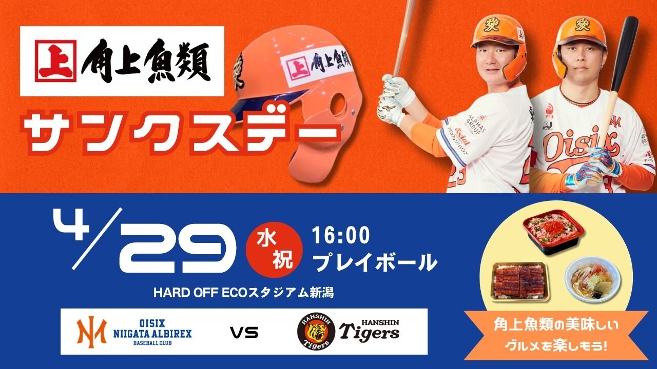 オイシックス新潟アルビレックス・ベースボール・クラブは、4月29日(水・祝)に開催される阪神タイガース戦にて、「南区DAY」を開催することをお知らせします。