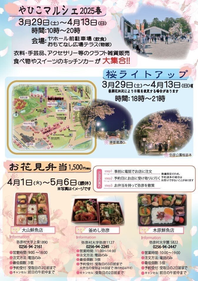 また、3月29日(土)~4月13日(日)の期間中、ヤホール前駐車場とおもてなし広場テラスを会場に「やひこマルシェ2025春」が開催されます。