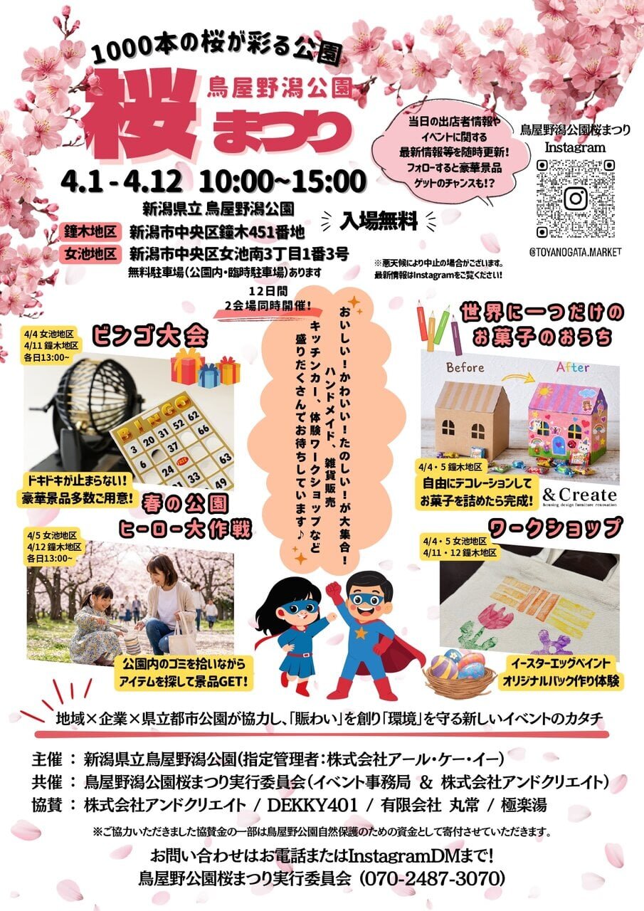 今年は「桜まつり」を鳥屋野潟公園 女池地区と鐘木地区にて、2会場同時開催します!