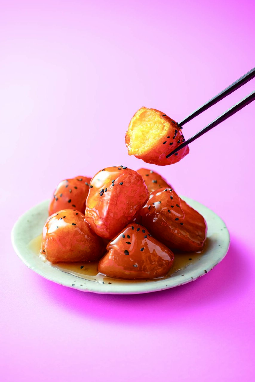 良質な菜種油でカラッと揚げたサツマイモを自慢の蜜にたっぷり絡めて仕上げた逸品です。