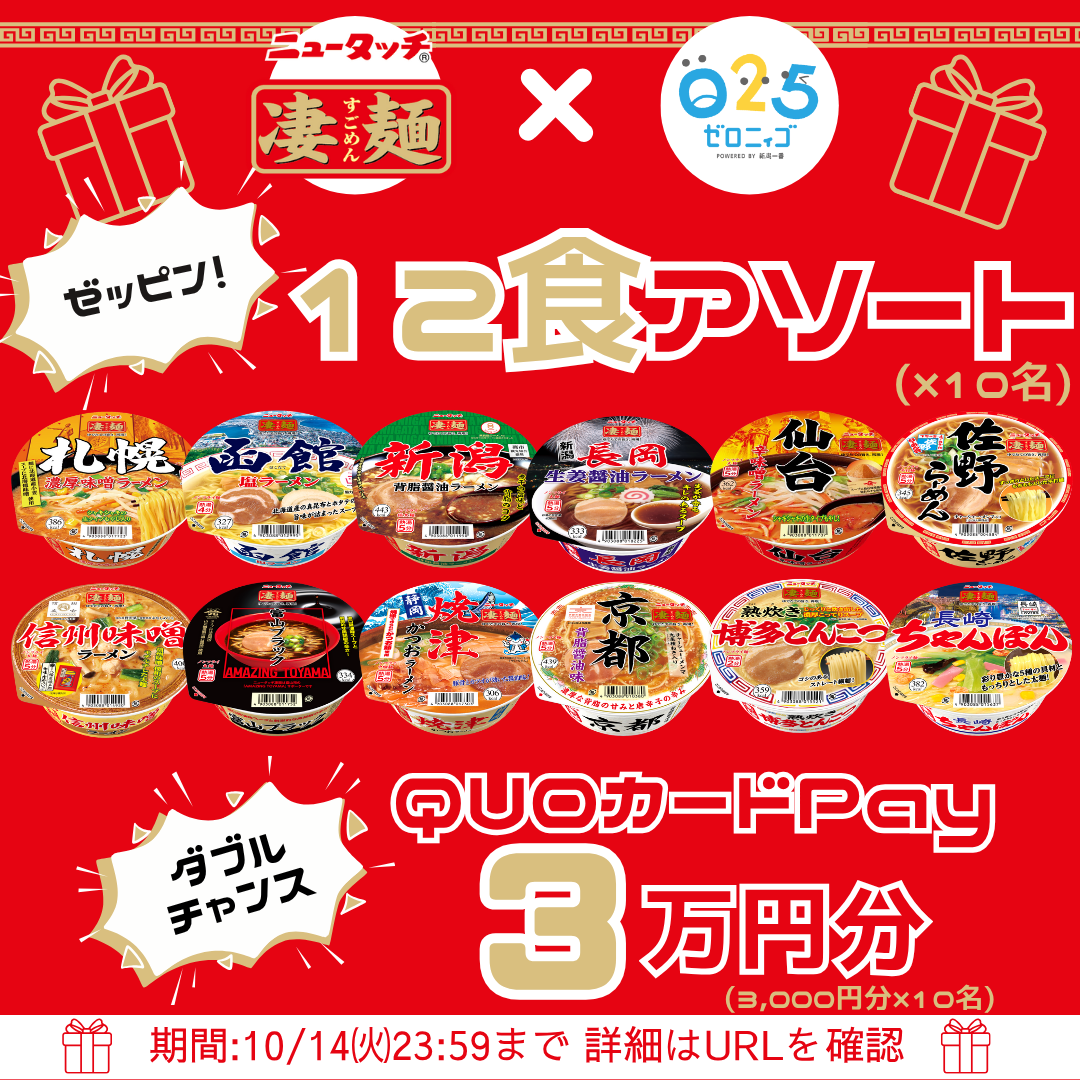 【10/29は凄麺の日!凄麺25年目突入記念!フォロー&リポストキャンペーン】抽選で合計20名様に凄麺オリジナル12食アソート・QUOカードPayが当たる!