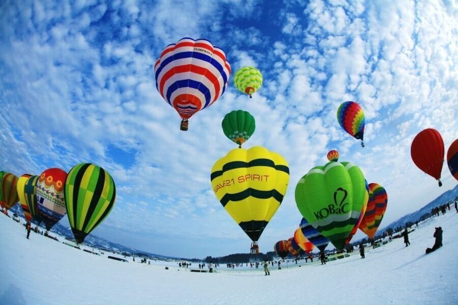 真っ白な雪原とカラフルな熱気球のコントラストが美しいおぢや風船一揆に訪れてみてはいかがでしょうか。