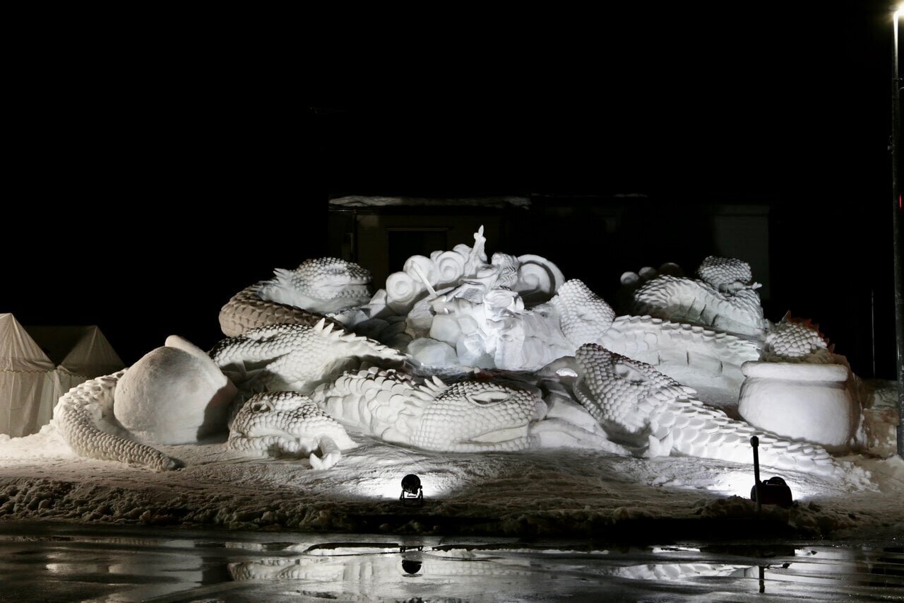 市内各地では、市民手づくりの雪の芸術作品を見ることができます。雪だけで作られているとは思えないスケール、繊細な技術や想像力あふれるデザインは見応え十分!