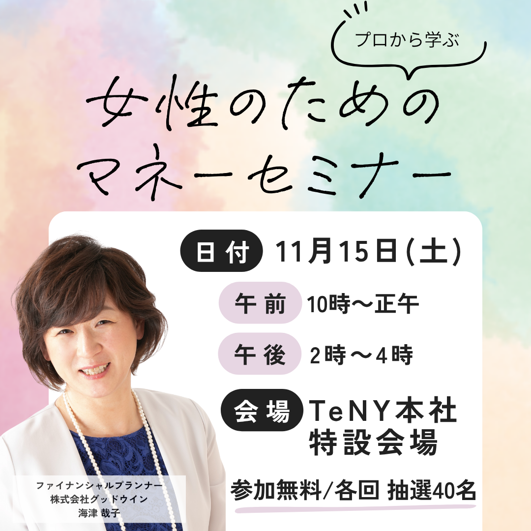 【11/15開催】賢いお金との付き合い方を知りたい方必見!TeNY主催「プロから学ぶ女性のためのマネーセミナー」