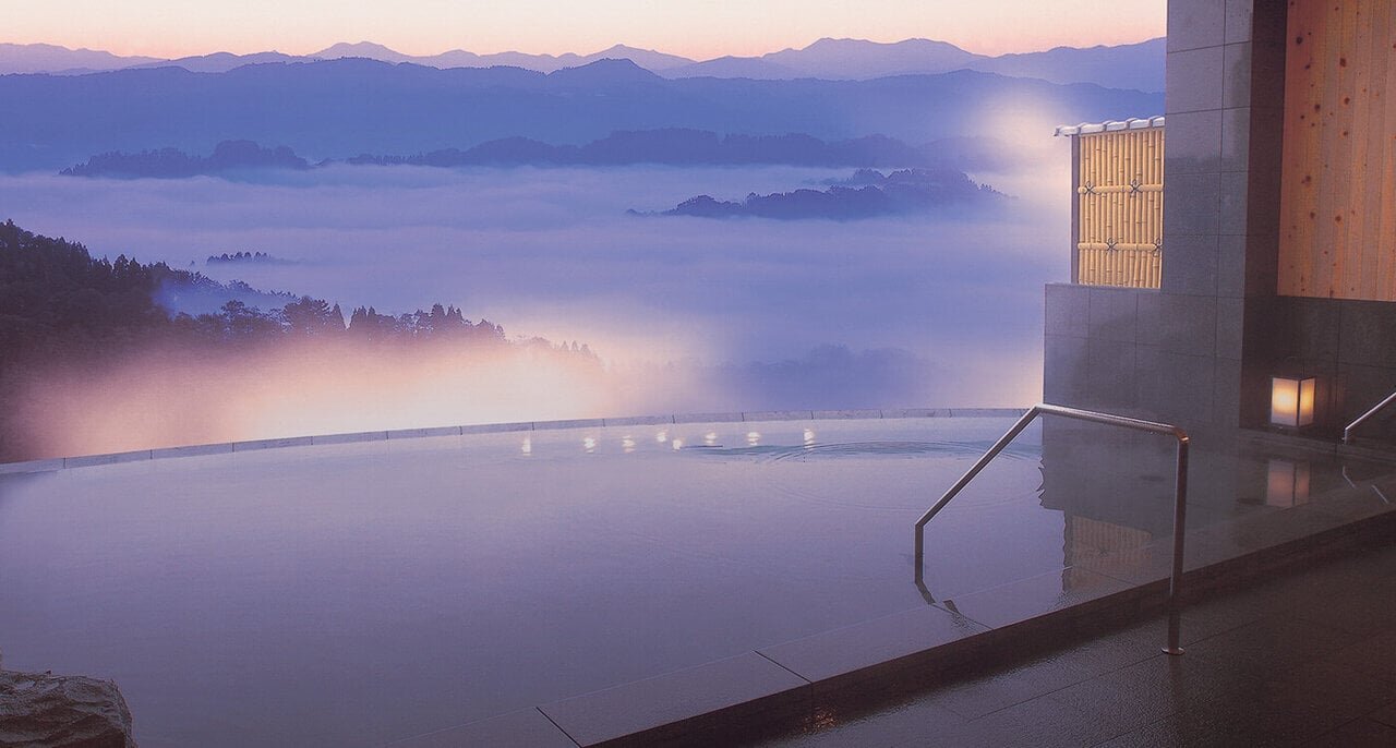 こちらの温泉で特に人気なのが、展望露天風呂「雲海の湯」。気候の条件が整えば、雲海を眺めながら温泉に浸かることができるんです!