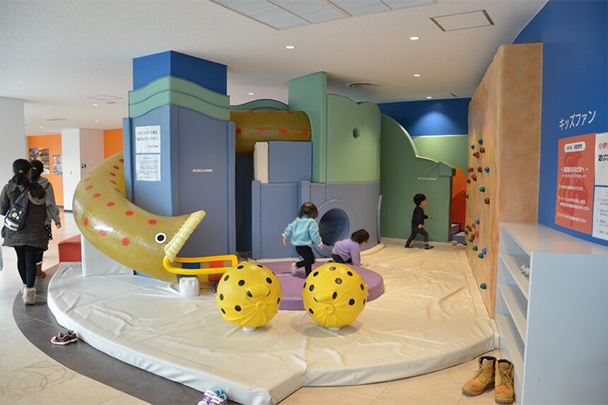 水族館らしい魚をモチーフにした遊具がそろったキッズスペースもあります。