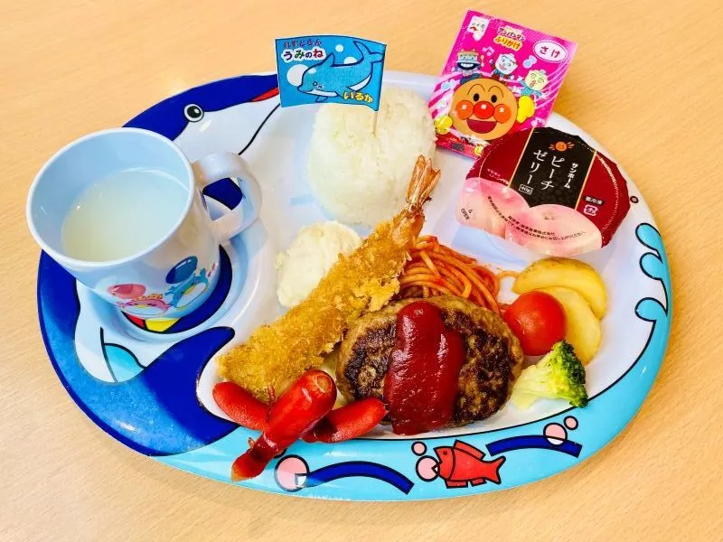 イルカの形がとってもかわいい「ドルフィンカレー」やエビフライやハンバーグなどお子様が好きなものがワンプレートにそろった「ニコニコセット」もありますよ♪