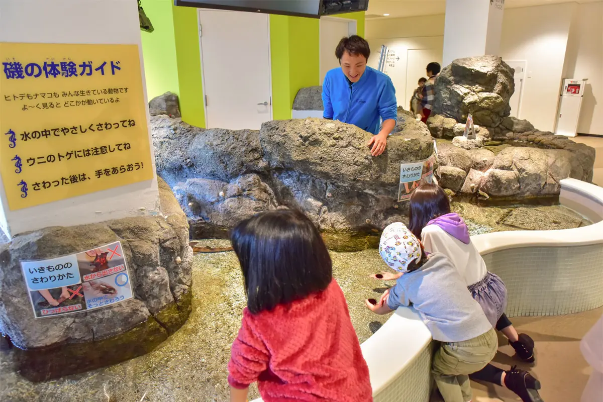 「体験・学習ゾーン」では、水族に触れながら生き物を体験できます。日替わりで開催している「体験プログラム」もありますよ♪