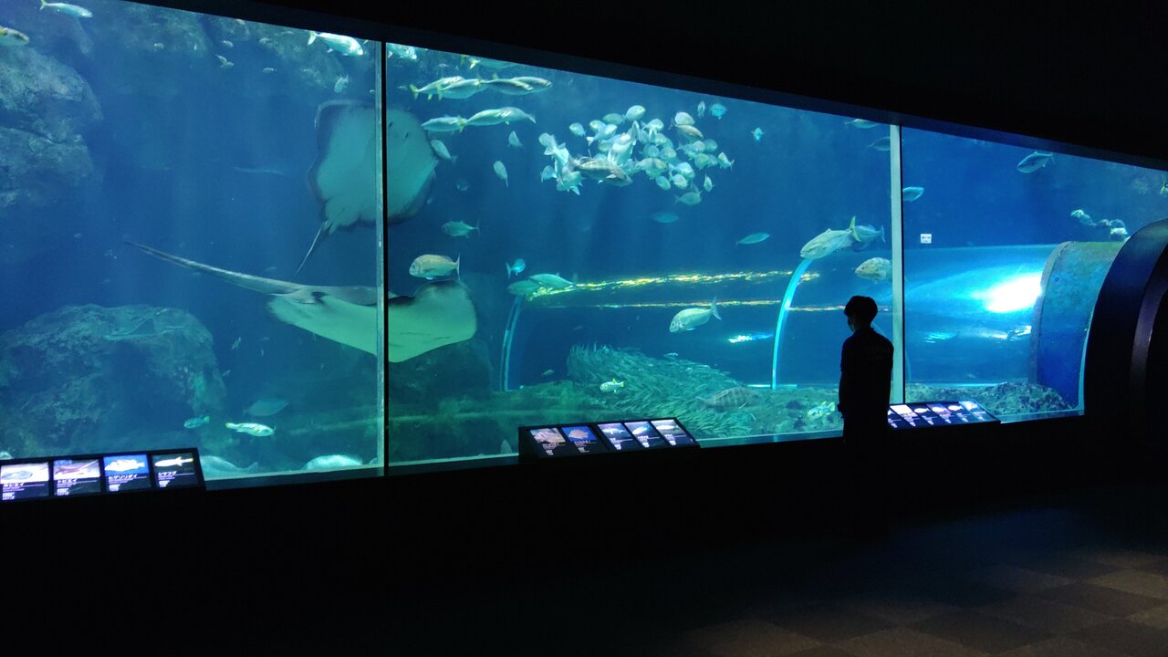 大水槽の下をくぐるマリントンネルは、魚と一緒に海中を泳いでいる感覚になれますよ♪海底から見る眺めは迫力満点です!