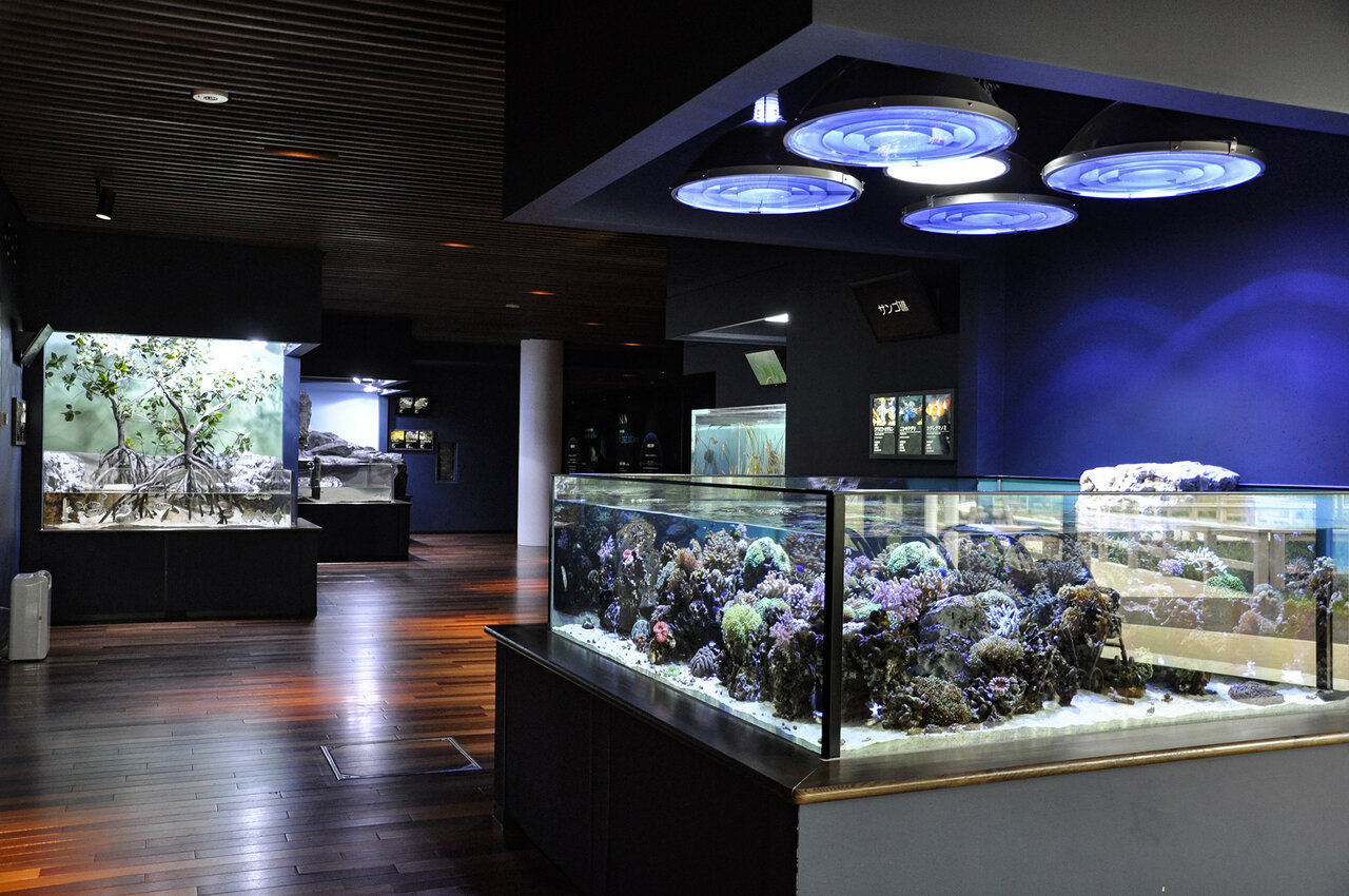 入口を抜けてすぐのところにある「潮風の風景」では、サンゴ礁や砂浜、干潟、磯など海岸線の風景を提示しています。