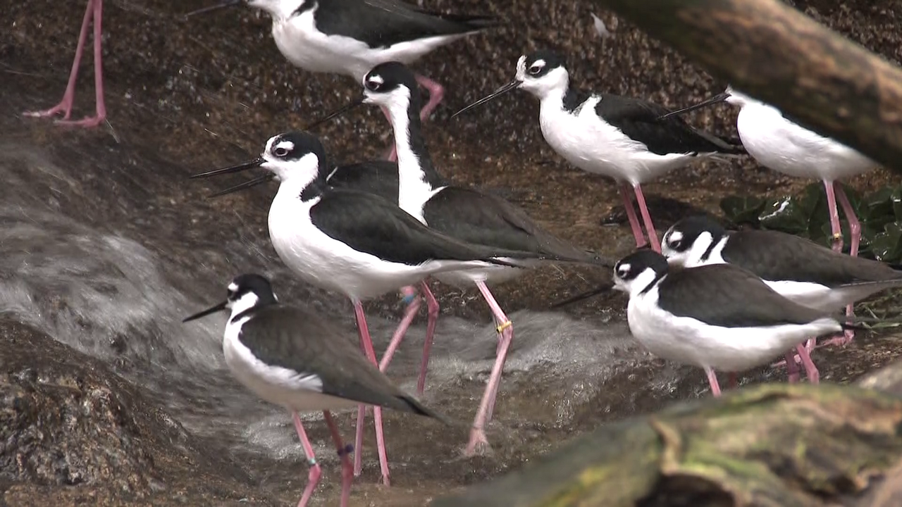 白黒の体にピンクの長い脚が特徴的な水鳥です!