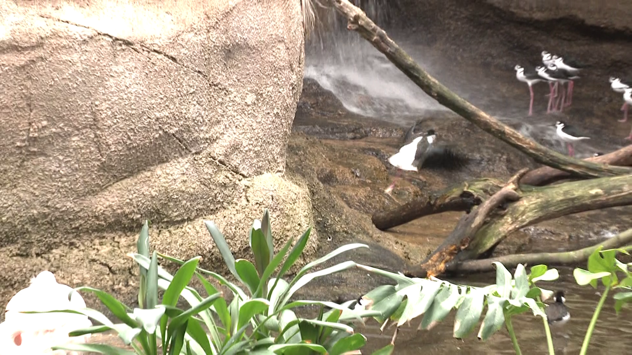 そんなハシビロコウの魅力は、飼育エリアの中にある島と島を行き来する際に見せる、