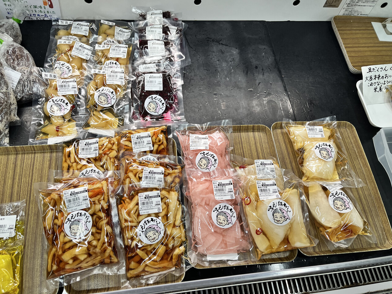 加工品のコーナーには、おいしそうな漬物がずらり!