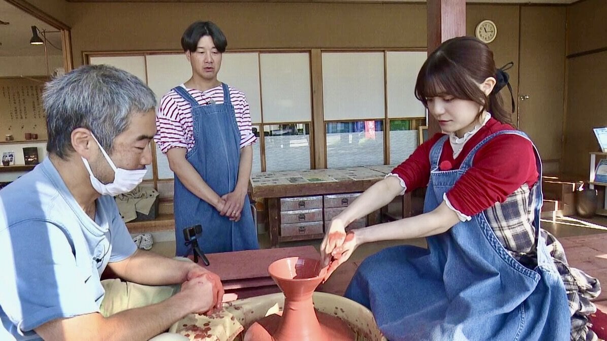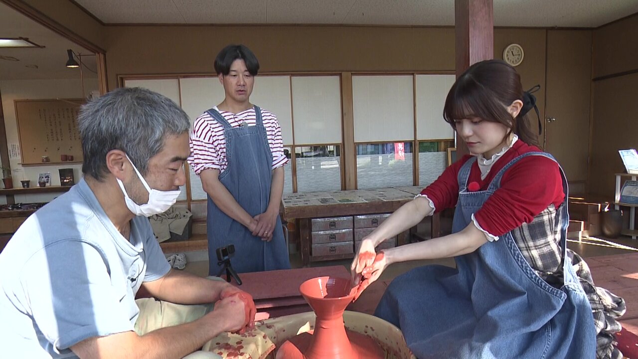 左/玉堂窯元 宮内雄一郎さん 中央/よしもと住みます芸人 いっすねー山脇さん 右/NGT48 清司麗菜さん