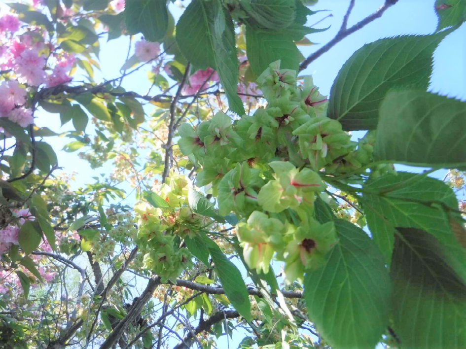 御衣黄は、緑色の花を咲かせる珍しい桜。