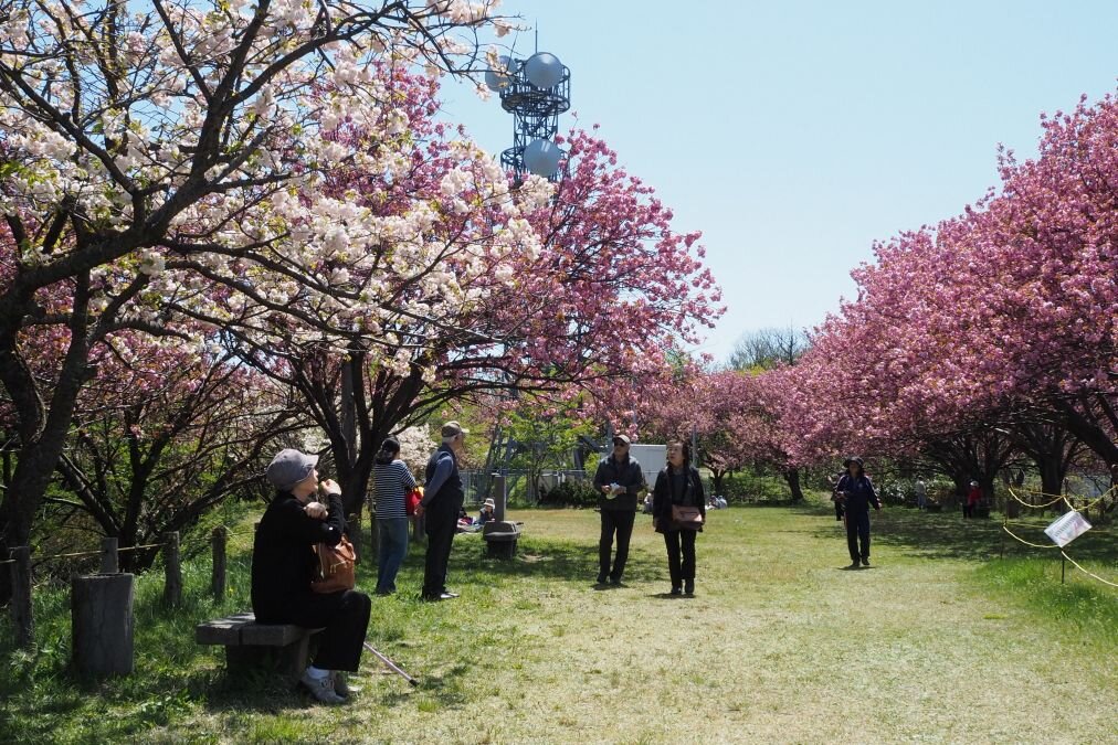 高台にある八重桜の名所