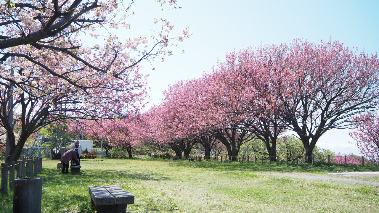 春になると、ソメイヨシノと八重桜あわせて約500本が美しく咲き誇ります。桜の見頃は例年4月中旬から5月初旬なので、ゴールデンウィーク頃まで楽しめますよ♪