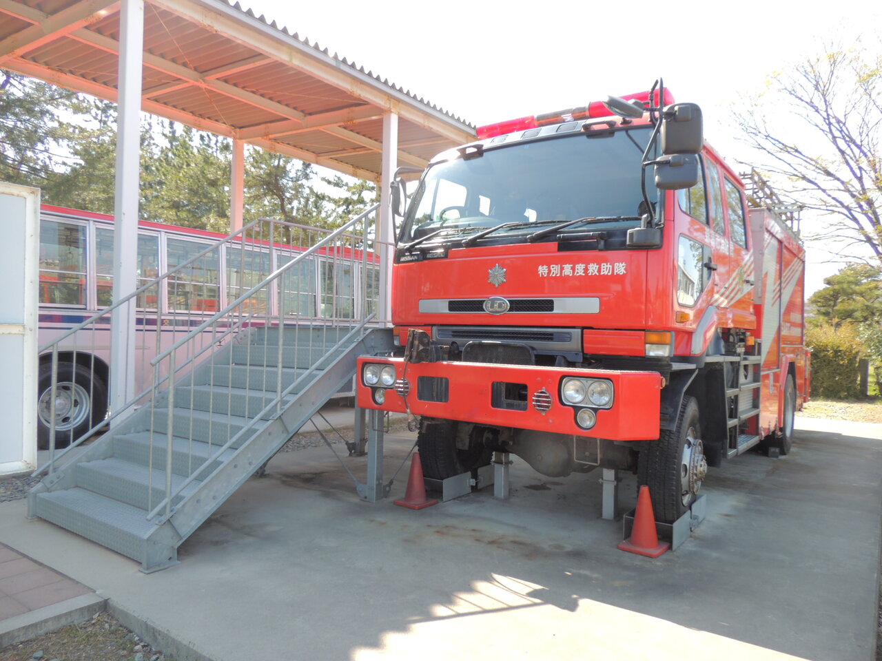 こちらは、レスキュー隊が実際に使っていた消防車!
