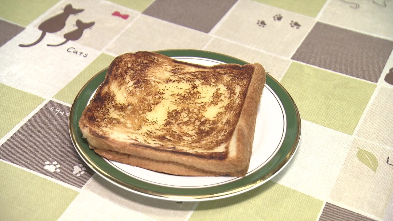 こちらのトーストサンドは、パンの“外側”にバターを塗って焼き上げるのが特徴。一般的には内側に塗ることが多いため、このスタイルはとても珍しいんです。