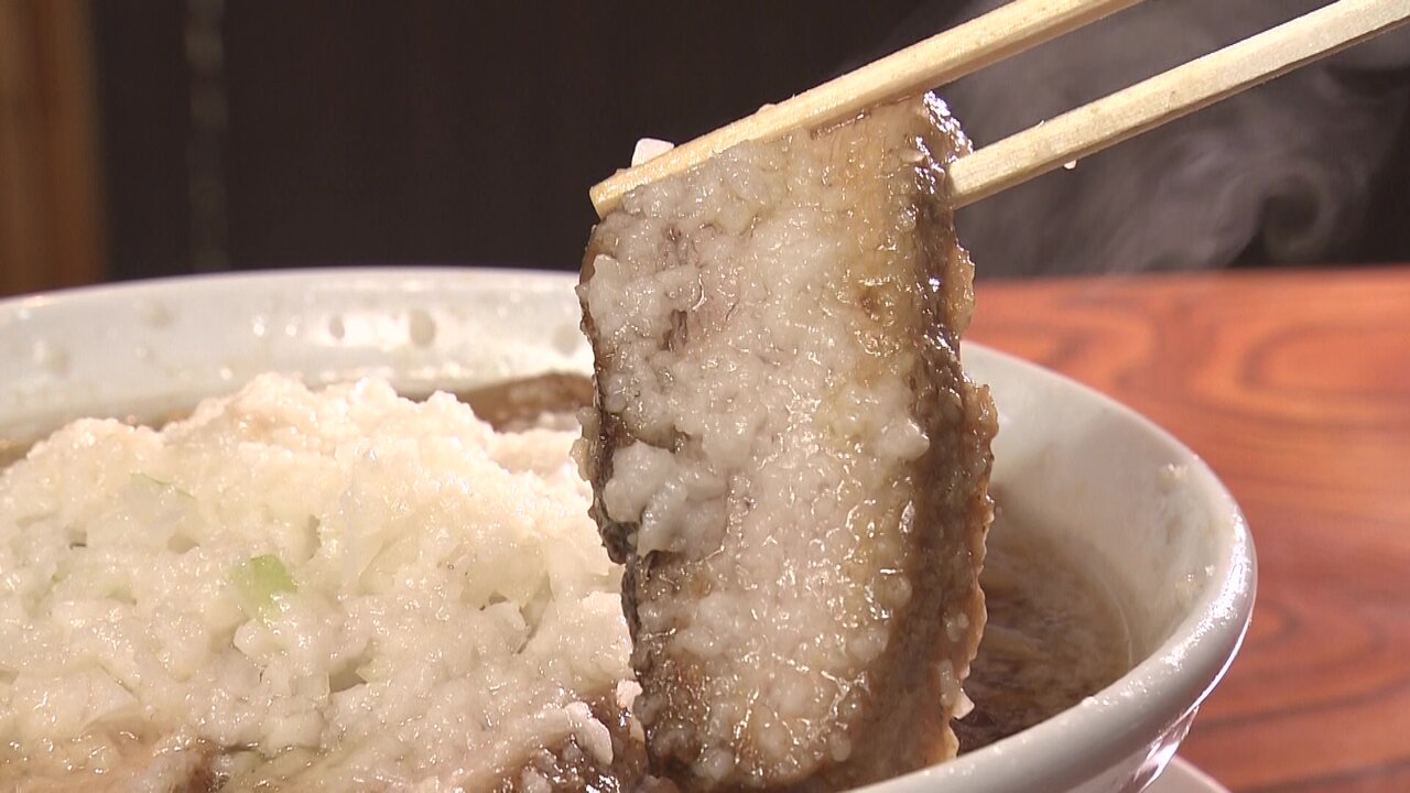 トッピングの主役はとろっとろの豚バラチャーシュー。ラーメンのスープで煮込んだ後、特製の醤油タレに6時間漬け込んでいるため、肉の旨味が楽しめる絶妙な塩味が中まで染み込んでいます。