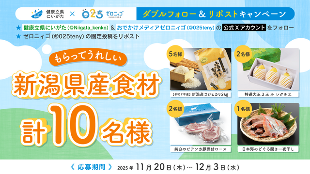 【10名様に新潟県産食材が当たる!】「健康立県にいがた」×「025」ダブルフォロー&リポストキャンペーン開催!11/20(木)から12/3(水)まで